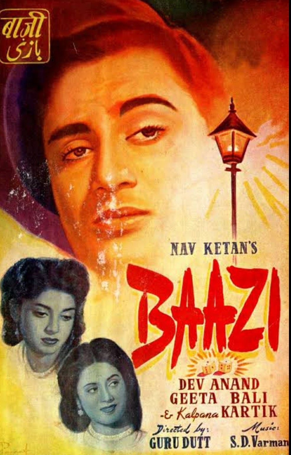 Baazi is Indian Hindi noir film directed by Guru Dutt. This was the second film of Dev Anand’s production house Navketan Films and as per a commitment given by Dev Anand to Guru Dutt in their days of struggle, the movie was given to Dutt for direction. Baazi was the first crime noir made in the country. It initiated a new genre called “Bombay Noir”, the success of which encouraged and defined the later noir films of 1950s and ’60s in Hindi cinema. It was the first film in which Dev Anand came up with his unique style of rapid-fire. The film’s story was partly inspired by the 1946 movie Gilda.