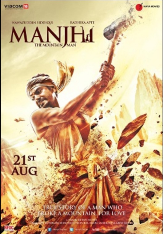Manjhi – The Mountain Man is a 2015 Indian Hindi language film based on the life of Dashrath Manjhi. Manjhi, widely known as the “Mountain Man”, was a poor labourer in Gehlaur village, near Gaya in Bihar, India, who using only a hammer and chisel, spends twenty-two years carving a road through a treacherous mountain. The film was released worldwide on 21 August 2015. The Bihar State Government declared the film tax-free on 30 July 2015.