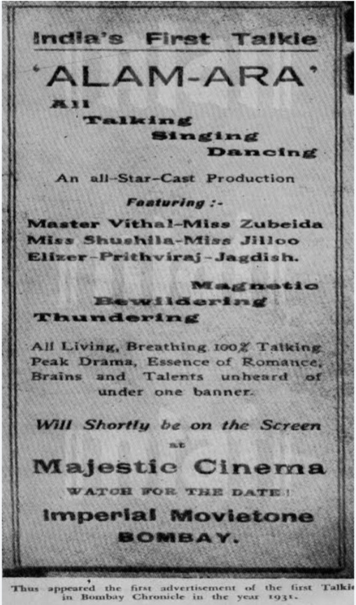 Alam Ara (Ornament of the World) was the first Indian historical fantasy and sound talkie made in 1931 directed by Ardeshir Irani. The film, not only broke the dominance of silent films, which were being made till then, but it also introduced the concept of music and playback in Indian cinema- something that continues to be the highlight of Indian films till date.