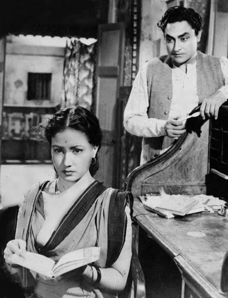 In Parineeta, the central conflict arises from the financial struggles faced by Lalita’s (Meena Kumari) uncle, Gurucharan (Nazir Hussain). Lalita, an orphan living with Gurucharan, grows close to Shekhar (Ashok Kumar), the son of their wealthy landlord neighbor. Shekhar harbors deep feelings for Lalita, and their bond gradually blossoms into a quiet but strong affection.